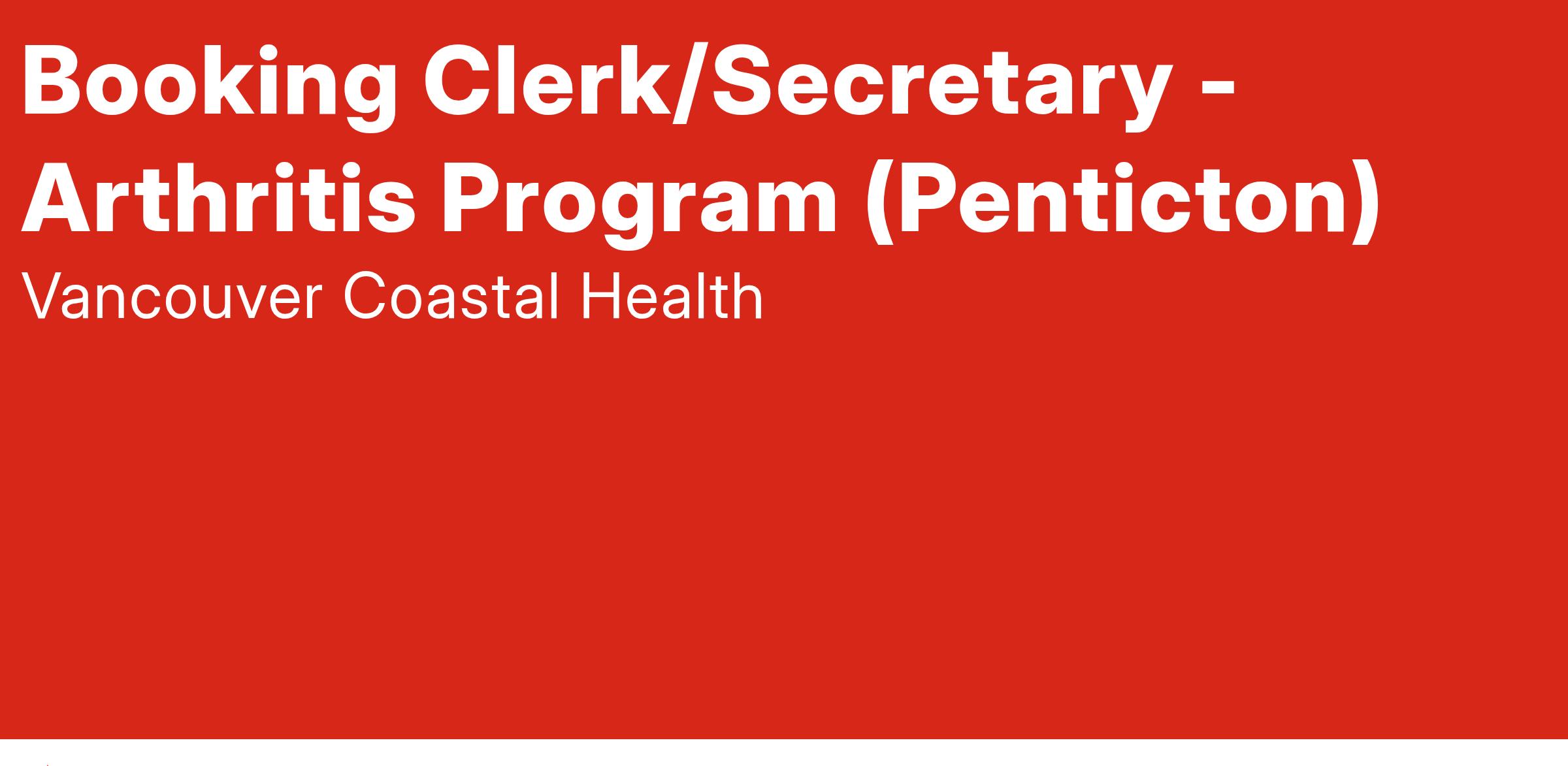 Vancouver Coastal Health is looking for a Booking Clerk/Secretary to join the Arthritis Program at Mary Pack Arthritis-Penticton in Penticton, B.C. Apply today to join our team!