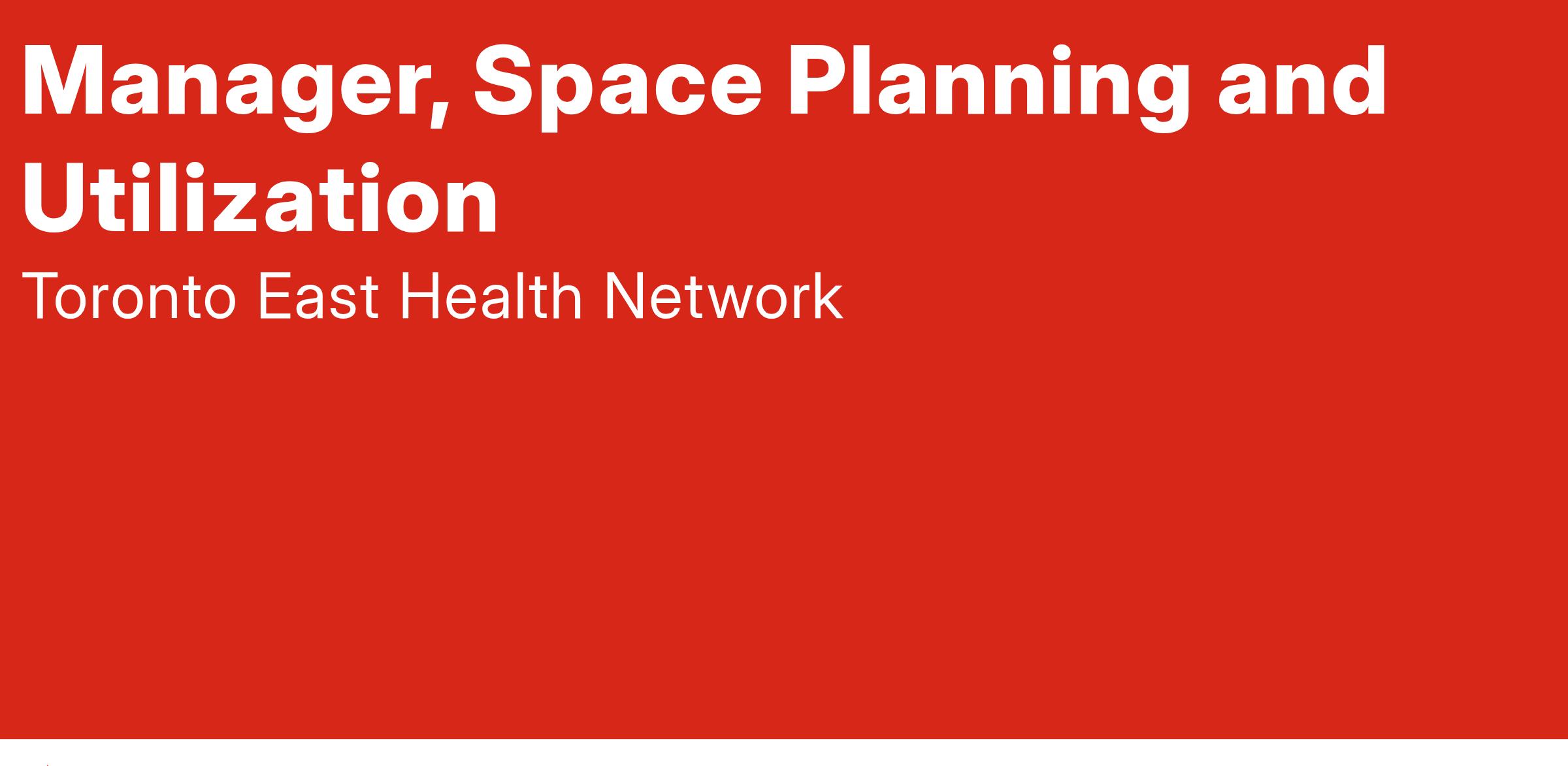 The Manager, Space Planning and Utilization champions space optimization and provides analysis of current use of space to inform planning decisions, including budget and schedule considerations, which will enable the design of space resulting in safe care environments with efficient workflows.