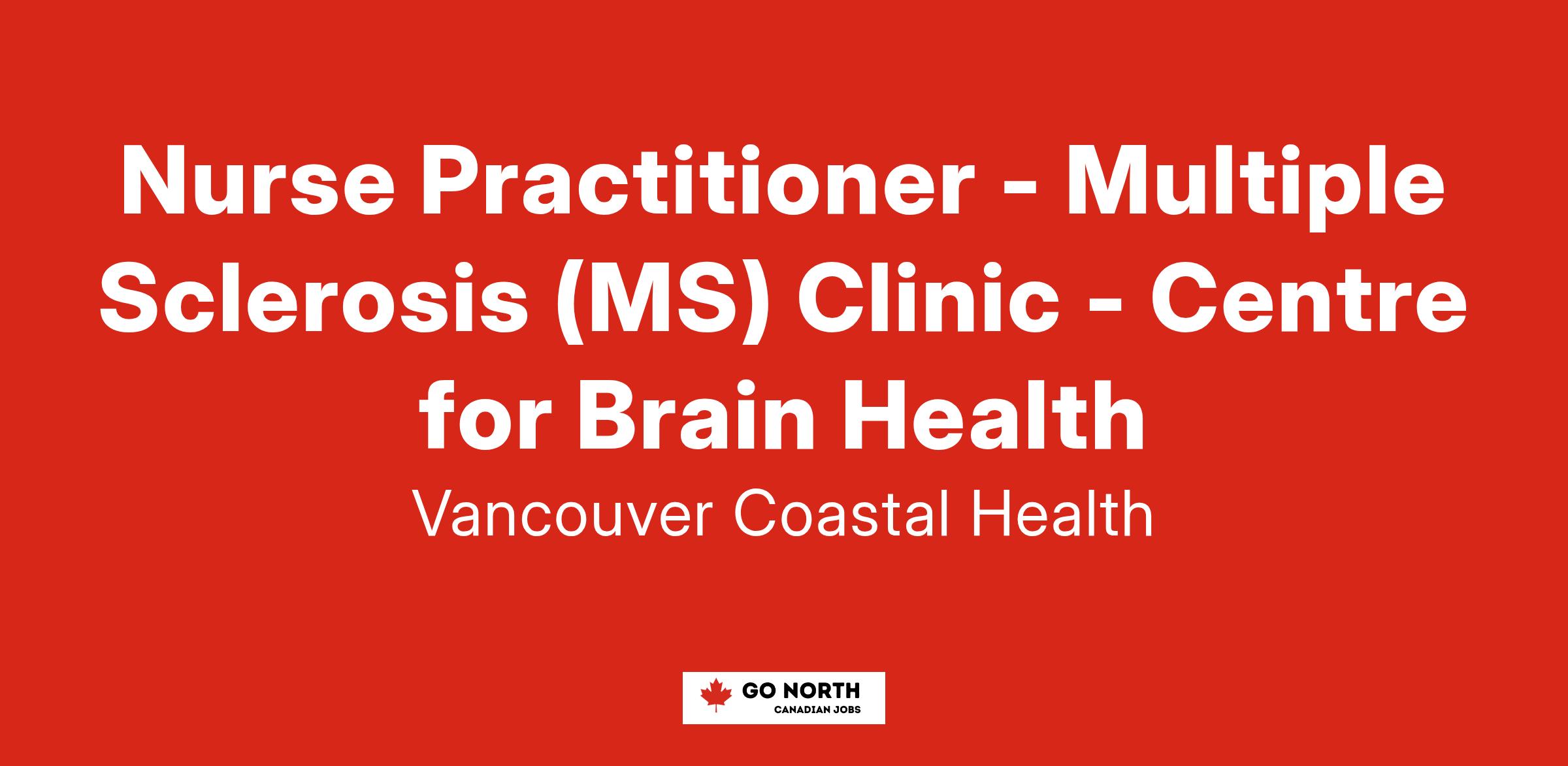 Come work as a Nurse Practitioner, Multiple Sclerosis(MS) Clinic, at the UBC Centre for Brain Health with Vancouver Coastal Health (VCH)!