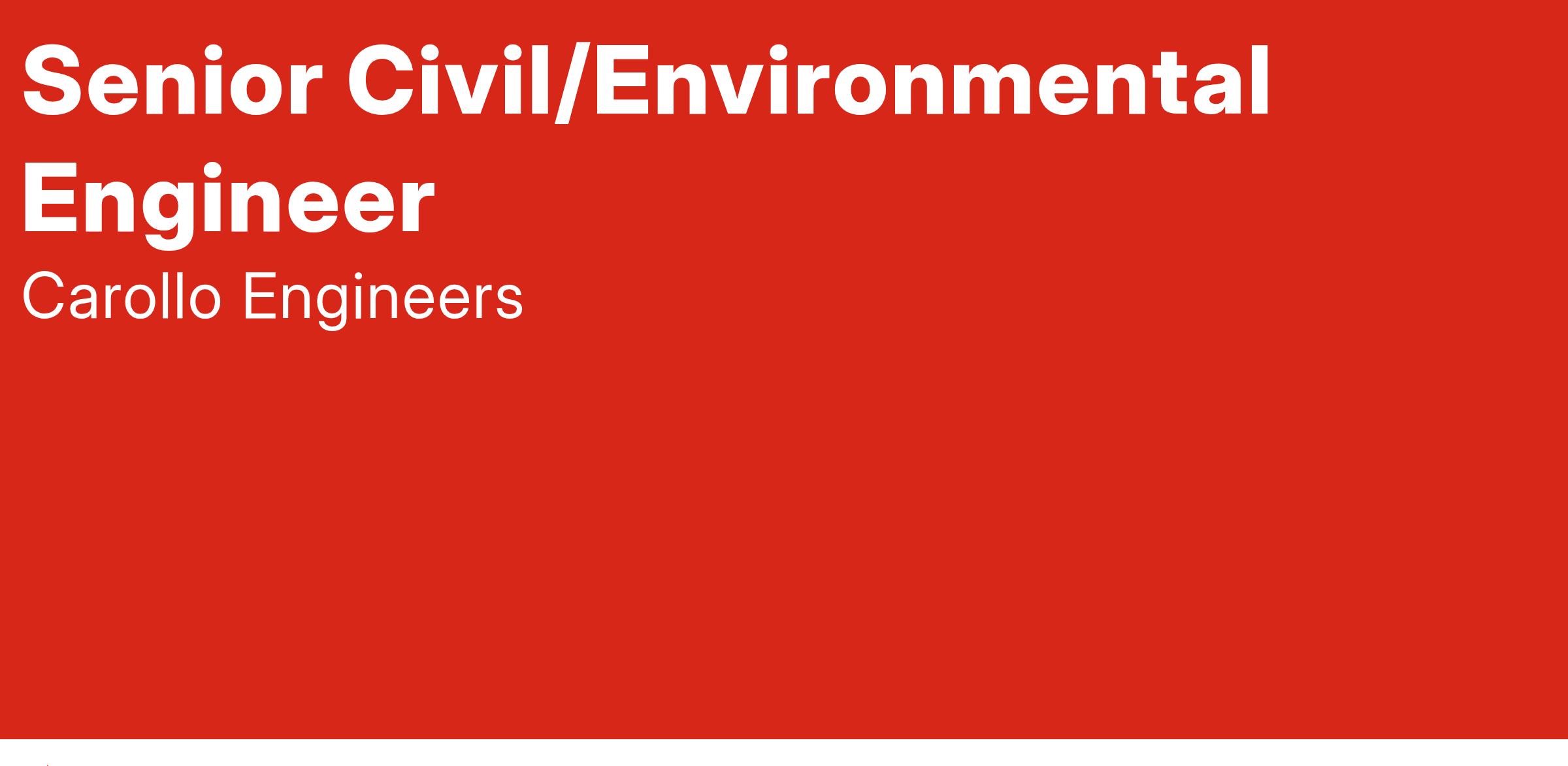 Carollo Engineers is an internationally recognized environmental engineering firm that specializes in the planning, design, and construction of water and wastewater facilities. We are seeking a Senior Civil/Enviromental Engineer to help grow our water and wastewater team capabilitlies.